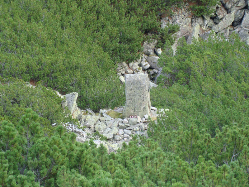 Miejsce w którym zginął M. Karłowicz, widoczne jest idąc z Hali Gąsienicowej w kierunku Czarnego